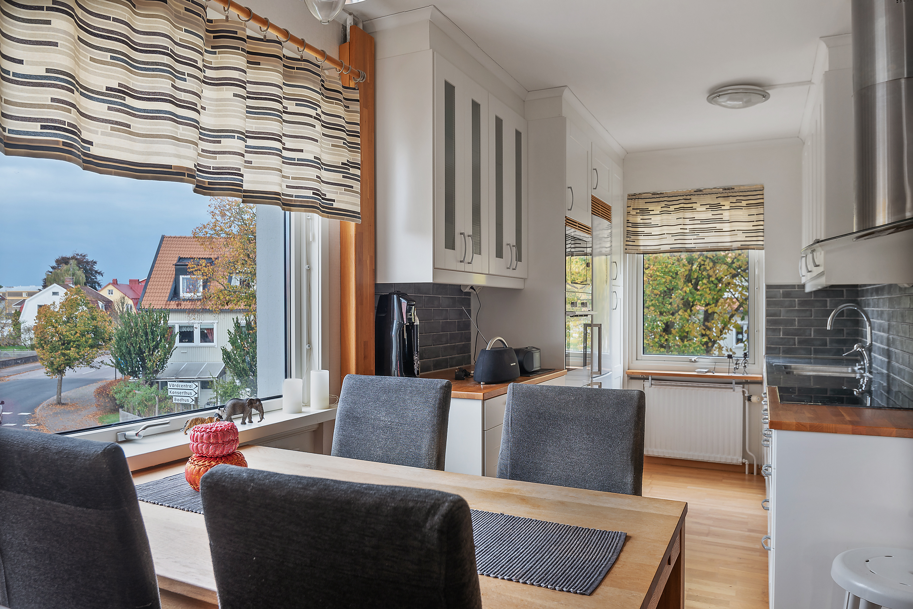 Stilren gavellägenhet med bra ljusinsläpp från tre väderstreck. Måste upplevas på plats helt enkelt. Här är bara att flytta in och njuta av närheten till pendeltåg och mataffärer. Tack vare isolerade fönster får man ett tyst innerklimat. Välkommen!
